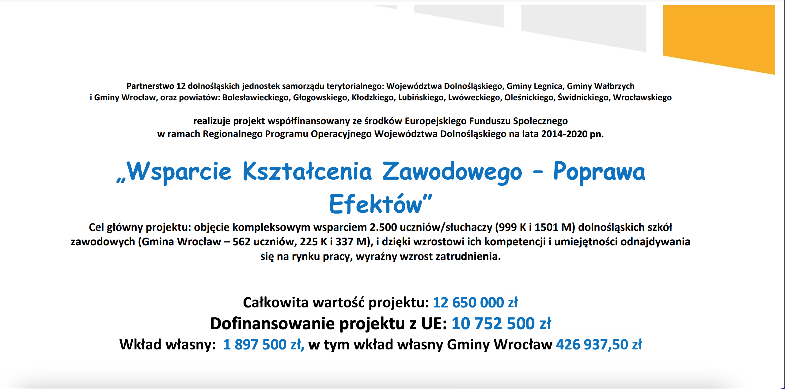 Chcemy poinformować, że nasza szkoła bierze udział w projekcie „Wsparcie Kształcenia Zawodowego – Poprawa Efektów”. Projekt ten jest realizowany przez
