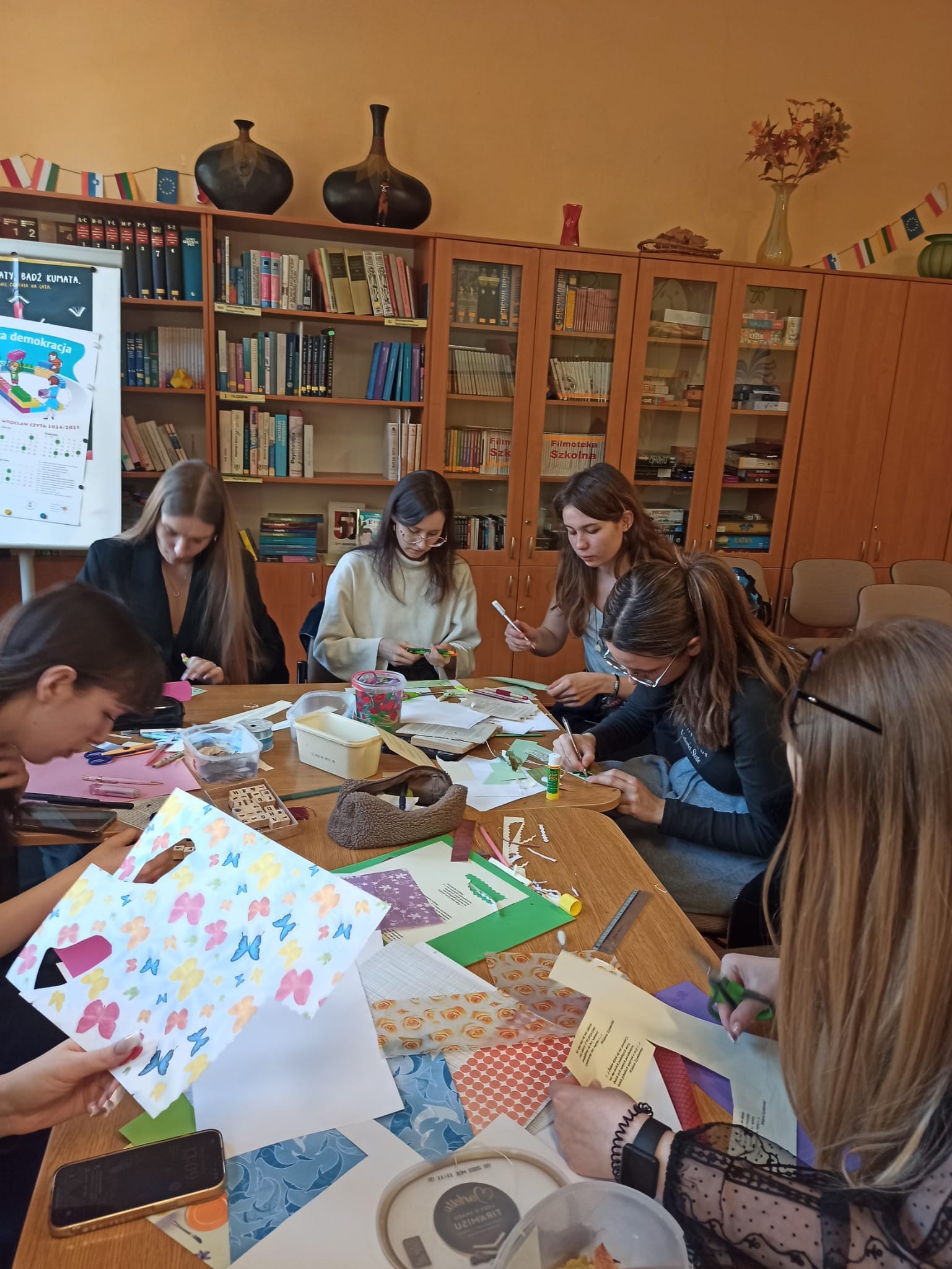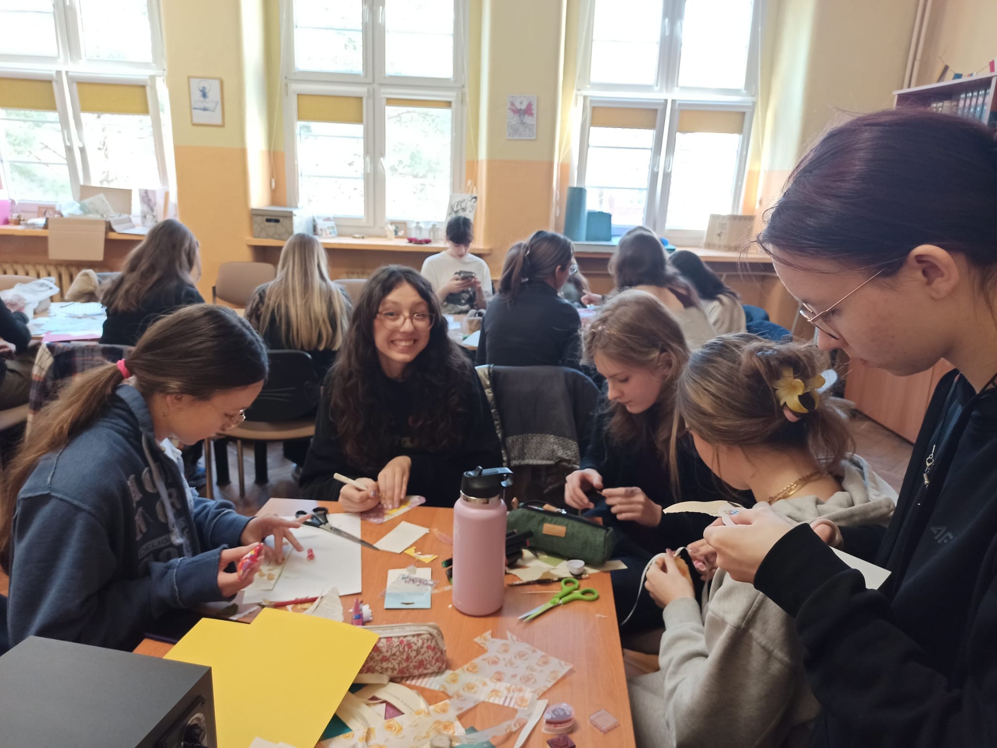 Tym razem przygotowywaliśmy zakładki na zbliżające się święto szkoły. Jak zwykle towarzyszyła nam serdeczna atmosfera
